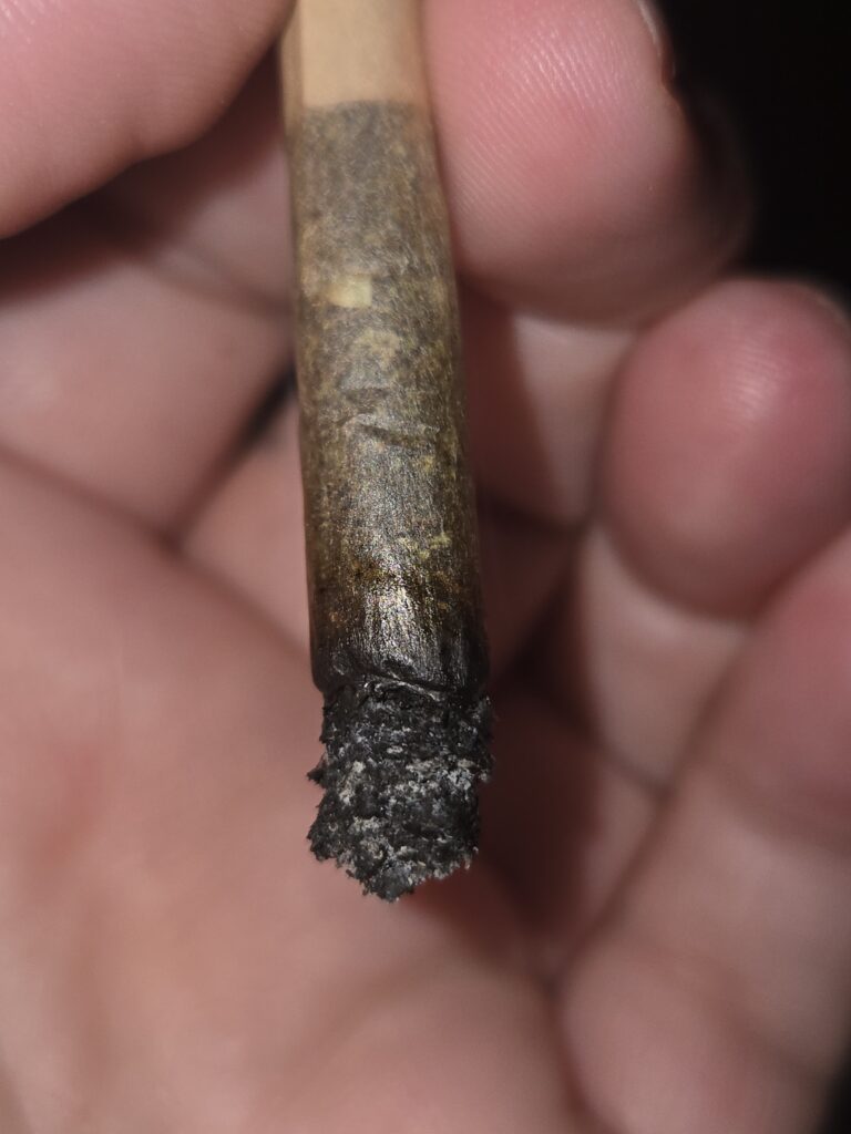 Au nez, c’est plutôt subtil, un peu sucré et herbal. En dry hit, c’est herbal, boisé, floral, sucré avec une lointaine pointe d’agrumes. En bouche, c’est terreux, boisé, herbal, avec un peu d’agrumes. Plus le joint avance, plus je décèle des notes florales et sucrées. La fumée est crémeuse mais légèrement irritante sur la gorge.